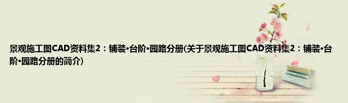 本文关于景观施工图CAD资料集2:铺装·台阶·园路分册的简介就讲解完毕,希望对大家有所帮助。