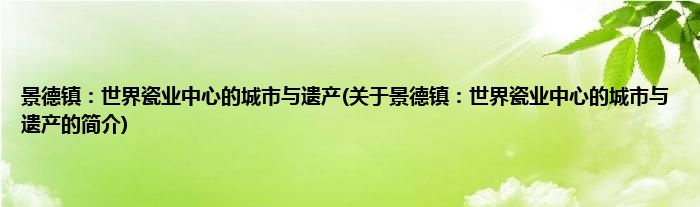 本文关于景德镇:世界瓷业中心的城市与遗产的简介就讲解完毕,希望对大家有所帮助。