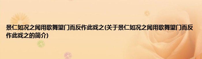 本文关于景仁如况之闻用歌舞望门而反作此戏之的简介就讲解完毕,希望对大家有所帮助。