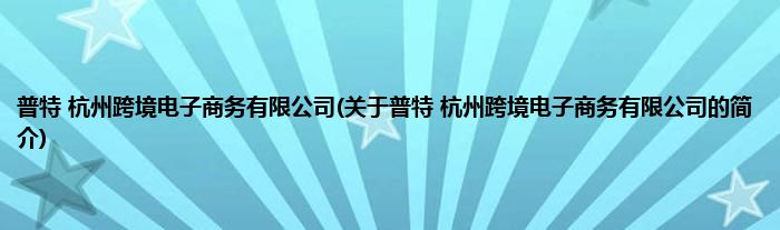 本文关于普特 杭州跨境电子商务有限公司的简介就讲解完毕,希望对大家有所帮助。