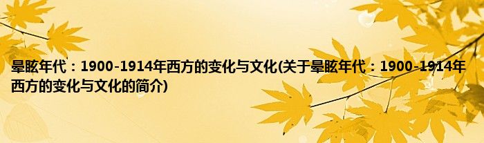 大家好,晕眩年代:1900-1914年西方的变化与文化,关于晕眩年代:1900-1914年西方的变化与文化的简介很多人还不知道,现在让我们一起来看看吧!