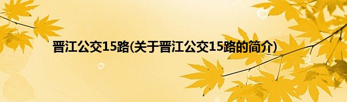 本文关于晋江公交15路的简介就讲解完毕,希望对大家有所帮助。