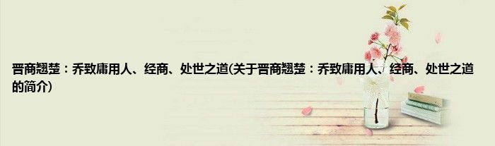 大家好,晋商翘楚:乔致庸用人、经商、处世之道,关于晋商翘楚:乔致庸用人、经商、处世之道的简介很多人还不知道,现在让我们一起来看看吧!