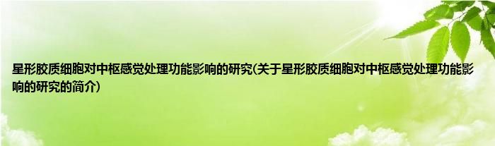 本文关于星形胶质细胞对中枢感觉处理功能影响的研究的简介就讲解完毕,希望对大家有所帮助。