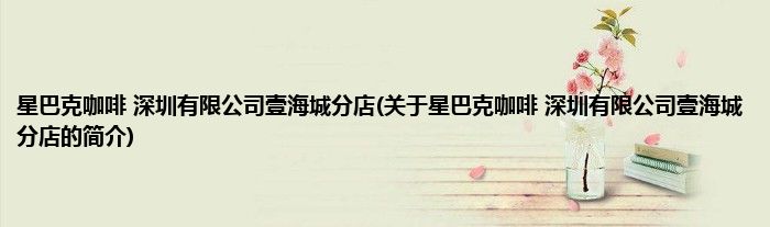 本文关于星巴克咖啡 深圳有限公司壹海城分店的简介就讲解完毕,希望对大家有所帮助。