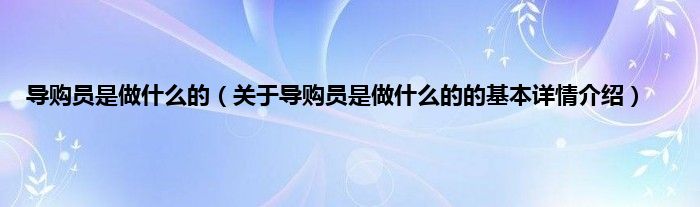 本文关于导购员是做什么的的基本详情介绍就讲解完毕,希望对大家有所帮助。