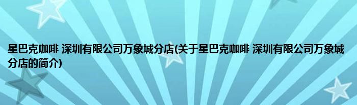 本文关于星巴克咖啡 深圳有限公司万象城分店的简介就讲解完毕,希望对大家有所帮助。