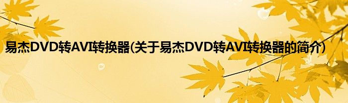 1、 易杰DVD转AVI转换器是一款应用软件。