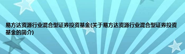 大家好,易方达资源行业混合型证券投资基金,关于易方达资源行业混合型证券投资基金的简介很多人还不知道,现在让我们一起来看看吧!
