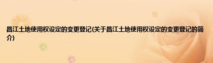 本文关于昌江土地使用权设定的变更登记的简介就讲解完毕,希望对大家有所帮助。