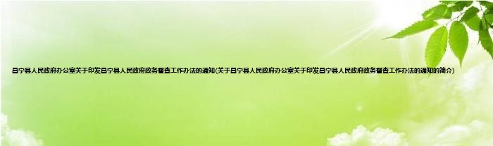 1、 《昌宁县人民政府办公室关于印发昌宁县人民政府政务督查工作办法的通知》是昌宁县人民政府发布的通知。