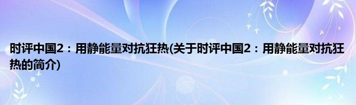 时评中国2:用静能量对抗狂热(关于时评中国2:用静能量对抗狂热的简介)