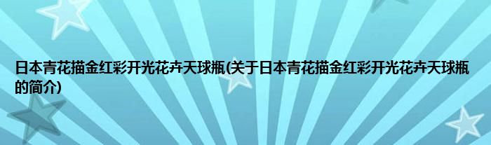 本文关于日本青花描金红彩开光花卉天球瓶的简介就讲解完毕,希望对大家有所帮助。