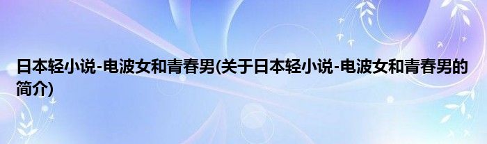 本文关于日本轻小说-电波女和青春男的简介就讲解完毕,希望对大家有所帮助。