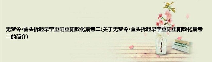 无梦令·藏头拆起早字重阳重阳教化集卷二(关于无梦令·藏头拆起早字重阳重阳教化集卷二的简介)