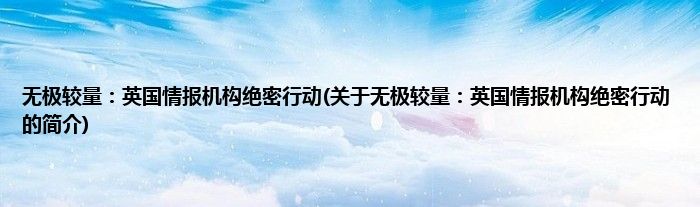 本文关于无极较量:英国情报机构绝密行动的简介就讲解完毕,希望对大家有所帮助。