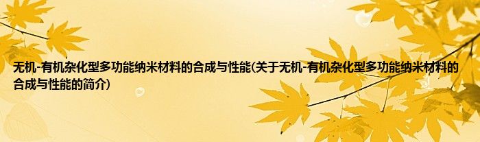 大家好,无机-有机杂化型多功能纳米材料的合成与性能,关于无机-有机杂化型多功能纳米材料的合成与性能的简介很多人还不知道,现在让我们一起来看看吧!