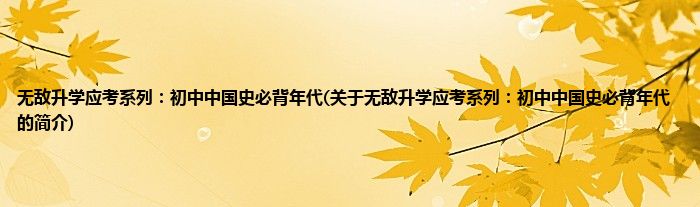 本文关于无敌升学应考系列:初中中国史必背年代的简介就讲解完毕,希望对大家有所帮助。