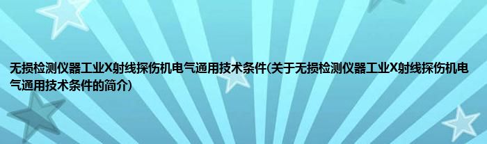 本文关于无损检测仪器工业X射线探伤机电气通用技术条件的简介就讲解完毕,希望对大家有所帮助。
