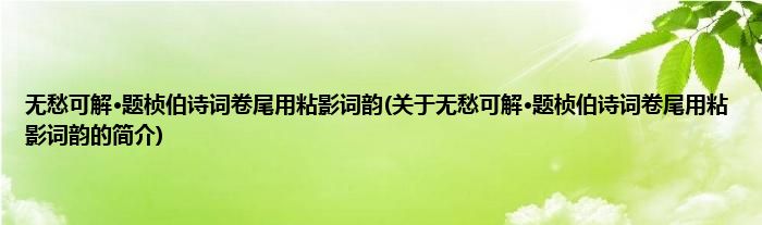 本文关于无愁可解·题桢伯诗词卷尾用粘影词韵的简介就讲解完毕,希望对大家有所帮助。