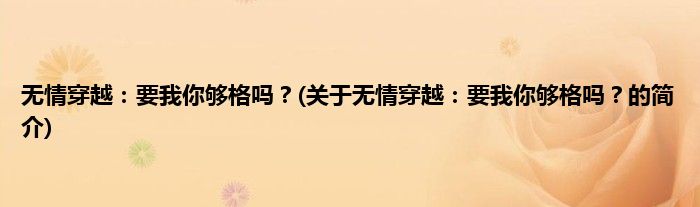 无情穿越:要我你够格吗?(关于无情穿越:要我你够格吗?的简介)