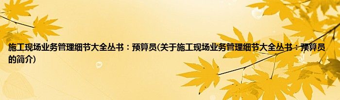 本文关于施工现场业务管理细节大全丛书:预算员的简介就讲解完毕,希望对大家有所帮助。