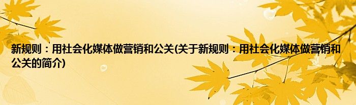 本文关于新规则:用社会化媒体做营销和公关的简介就讲解完毕,希望对大家有所帮助。
