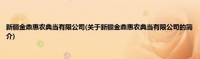 本文关于新疆金鼎惠农典当有限公司的简介就讲解完毕,希望对大家有所帮助。