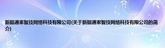 大家好,新疆通家智技网络科技有限公司,关于新疆通家智技网络科技有限公司的简介很多人还不知道,现在让我们一起来看看吧!