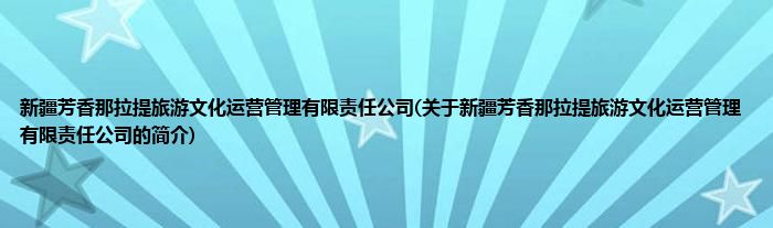 本文关于新疆芳香那拉提旅游文化运营管理有限责任公司的简介就讲解完毕,希望对大家有所帮助。