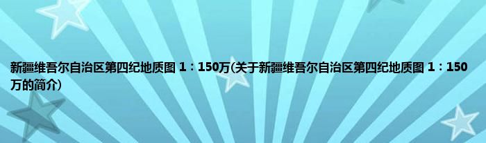 本文关于新疆维吾尔自治区第四纪地质图 1︰150万的简介就讲解完毕,希望对大家有所帮助。