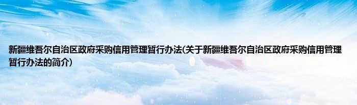大家好,新疆维吾尔自治区政府采购信用管理暂行办法,关于新疆维吾尔自治区政府采购信用管理暂行办法的简介很多人还不知道,现在让我们一起来看看吧!