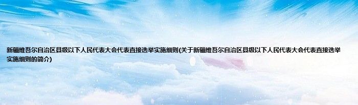 大家好,新疆维吾尔自治区县级以下人民代表大会代表直接选举实施细则,关于新疆维吾尔自治区县级以下人民代表大会代表直接选举实施细则的简介很多人还不知道,现在让我们一起来看看吧!
