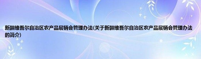 本文关于新疆维吾尔自治区农产品展销会管理办法的简介就讲解完毕,希望对大家有所帮助。