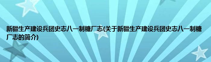 本文关于新疆生产建设兵团史志八一制糖厂志的简介就讲解完毕,希望对大家有所帮助。