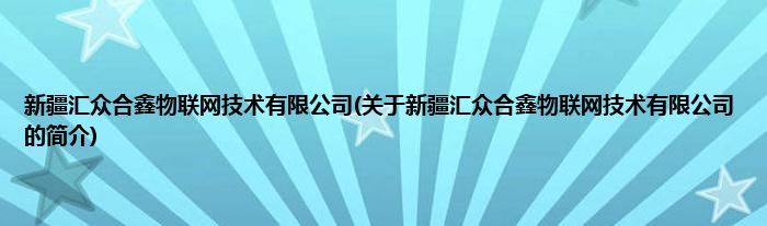 本文关于新疆汇众合鑫物联网技术有限公司的简介就讲解完毕,希望对大家有所帮助。