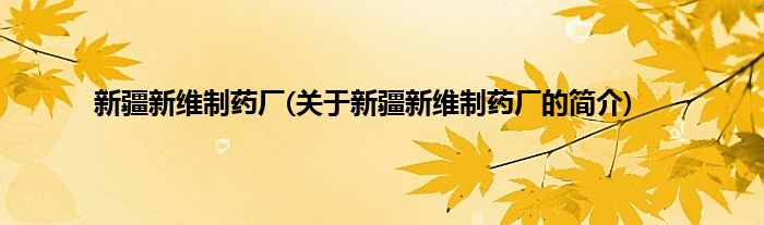 本文关于新疆新维制药厂的简介就讲解完毕,希望对大家有所帮助。
