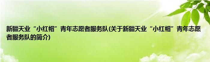 本文关于新疆天业“小红帽”青年志愿者服务队的简介就讲解完毕,希望对大家有所帮助。