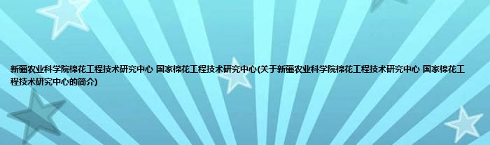 新疆农业科学院棉花工程技术研究中心 国家棉花工程技术研究中心(关于新疆农业科学院棉花工程技术研究中心 国家棉花工程技术研究中心的简介)