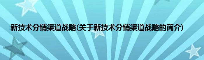 本文关于新技术分销渠道战略的简介就讲解完毕,希望对大家有所帮助。
