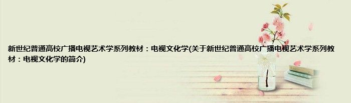 1、 《新世纪普通高校广播电视艺术学系列教材:电视文化学》共分七章,从电视文化的界定、电视文化的属性与特征、电视文化的价值取向、电视文化的功能、影响电视文化的因素等七个方面梳理了电视文化学的内涵和外延,并配以图片。