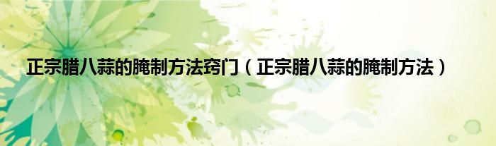 大家好,小科来为大家解答以上问题。正宗腊八蒜的腌制方法窍门,正宗腊八蒜的腌制方法很多人还不知道,现在让我们一起来看看吧!