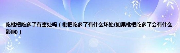 大家好,小科来为大家解答以上问题。吃枇杷吃多了有害处吗,枇杷吃多了有什么坏处(如果枇杷吃多了会有什么影响)很多人还不知道,现在让我们一起来看看吧!