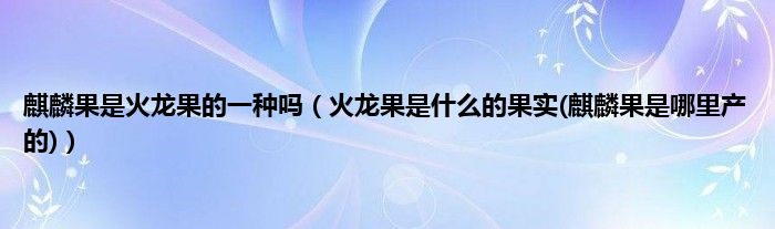 大家好,小科来为大家解答以上问题。麒麟果是火龙果的一种吗,火龙果是什么的果实(麒麟果是哪里产的)很多人还不知道,现在让我们一起来看看吧!