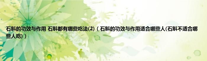 大家好,小科来为大家解答以上问题。石斛的功效与作用 石斛都有哪些吃法(2),石斛的功效与作用适合哪些人(石斛不适合哪些人吃)很多人还不知道,现在让我们一起来看看吧!
