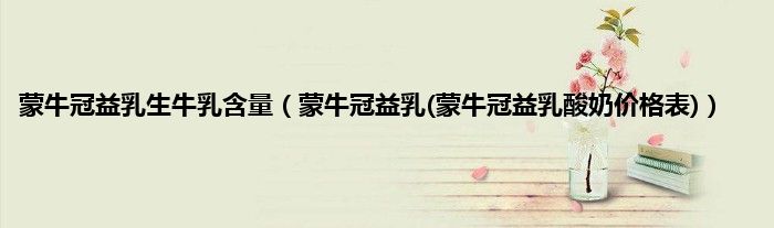 大家好,小科来为大家解答以上问题。蒙牛冠益乳生牛乳含量,蒙牛冠益乳(蒙牛冠益乳酸奶价格表)很多人还不知道,现在让我们一起来看看吧!