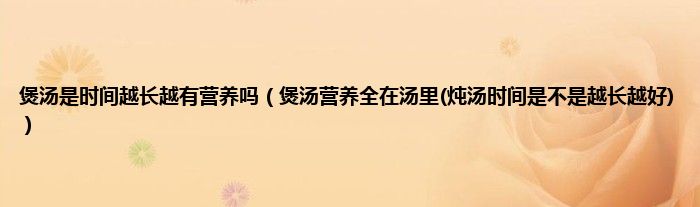 大家好,小科来为大家解答以上问题。煲汤是时间越长越有营养吗,煲汤营养全在汤里(炖汤时间是不是越长越好)很多人还不知道,现在让我们一起来看看吧!