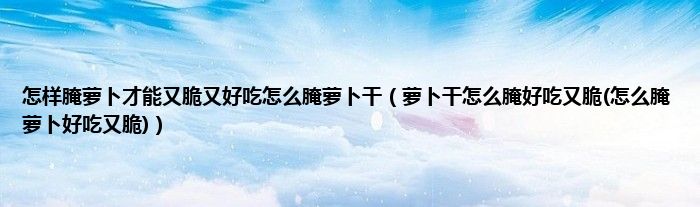 大家好,小科来为大家解答以上问题。怎样腌萝卜才能又脆又好吃怎么腌萝卜干,萝卜干怎么腌好吃又脆(怎么腌萝卜好吃又脆)很多人还不知道,现在让我们一起来看看吧!
