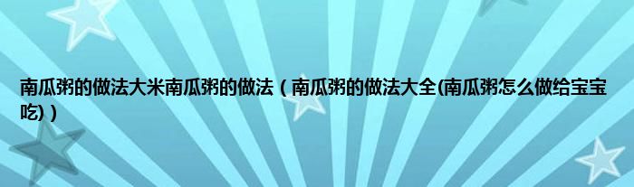 大家好,小科来为大家解答以上问题。南瓜粥的做法大米南瓜粥的做法,南瓜粥的做法大全(南瓜粥怎么做给宝宝吃)很多人还不知道,现在让我们一起来看看吧!