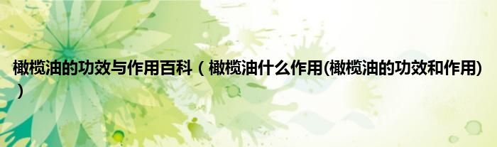 大家好,小科来为大家解答以上问题。橄榄油的功效与作用百科,橄榄油什么作用(橄榄油的功效和作用)很多人还不知道,现在让我们一起来看看吧!